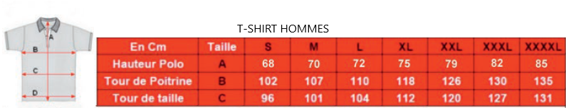 Pour les tailles voir le tableau des dimensions avant de faire votre choix.