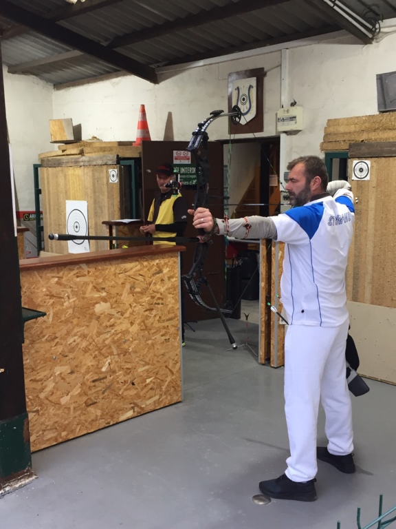 Mathys et Stéphane commencent fort avec bons nombres de "chapelets" (centre de la cible). Peu à peu, le stress, le froid et la pluie, font vassiller Mathys qui fait une paille. Stéphane reste très concentré et ne lâche rien. Avec la fatigue, Mathys a du mal à tirer et fait encore deux pailles, ce qui lui coûte le podium.