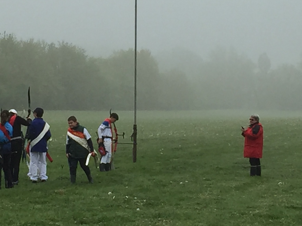 C'est par temps de brouillard que commença le tir du Roitelet où Mathys représentait notre compagnie. Comme lors de notre tir à l'oiseau, ce tir se déroulait à la perche. A la 6ème flèche Mathys a abattu l'oiseau le qualifiant pour la finale.